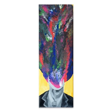 Esta persona cuya cabeza se convierte en una explosión de colores caóticos, simboliza la mente que no encuentra descanso. Los colores vibrantes y desordenados reflejan la agitación interna, el constante sobrepensar que nos impide ser nosotros mismos. Esta obra es una ventana al tumulto de una mente que nunca se apaga, siempre en movimiento, siempre buscando respuestas en el torbellino de pensamientos. Es un retrato de la ansiedad, de la lucha por encontrar paz en medio del caos mental, un recordatorio de que, a veces, nuestra mayor batalla se libra dentro de nosotros mismos.