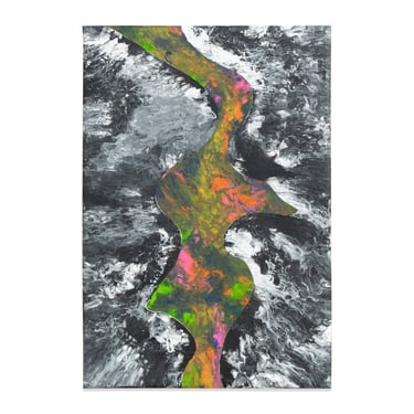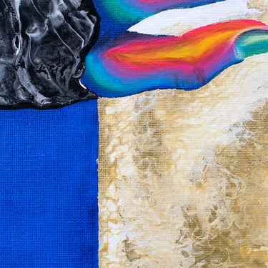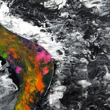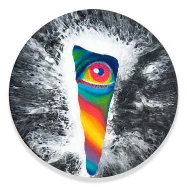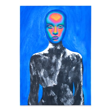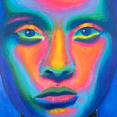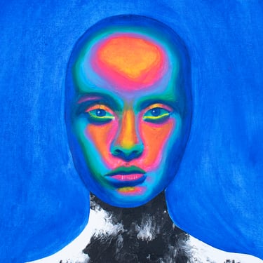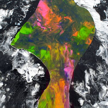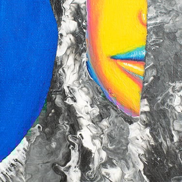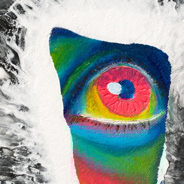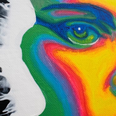 Despertar es una representación del momento en que una persona finalmente conecta con su verdadero ser. El rostro de una mujer, compuesto por una explosión de colores vibrantes, emerge desde un manto en blanco y negro, que simboliza lo rígido y establecido. La dualidad entre el cuerpo monocromático y el rostro multicolor refleja el contraste entre la vida conformista y el florecimiento de la identidad auténtica.