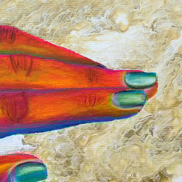 En "La Mano que nos Libera" quiero plasmar el momento en que dejamos atrás las cadenas del pasado para entrar en un plano donde la luz y el color son protagonistas. La mano es la manifestación del renacimiento personal, del acto consciente de avanzar hacia un futuro lleno de posibilidades, dejando el peso monocromático del pasado representado en el brazo en blanco y negro. El color dorado, que domina el espacio que la mano toca, simboliza la transformación suprema, el logro de un estado elevado de conciencia y propósito.