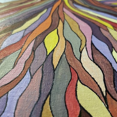 Los colores simbolizan las diferentes etapas que vivimos, la infancia, que sería la base del cuadro dominada por colores vivos y muy llamativos, que a través de una etapa donde todo se concentra como la adolescencia florece la adultez que es un mar de posibilidades representado por los colores fríos verdes y azules que hay en la parte de la copa del árbol.