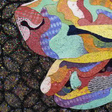 El material utilizado en esta obra de arte proviene de un expositor de madera reutilizado. La creatividad ha convertido un objeto cotidiano en una pieza única y original. La reutilización de materiales en el arte es una manera de darles una segunda vida y contribuir a la preservación del medio ambiente. La combinación de elementos reciclados con técnicas artísticas resulta en obras sorprendentes y cargadas de significado.