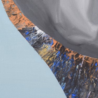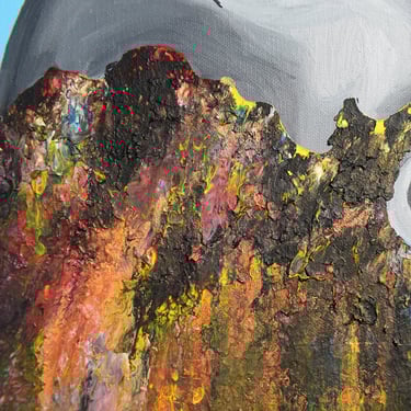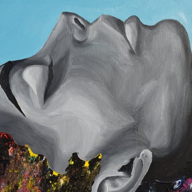 Se manifiestan esos momentos en que un evento inesperado explota nuestra concepción de la realidad. La obra presenta un primer plano de una cabeza que se parte en una explosión de colores caóticos. Este estallido simboliza cómo los eventos impactantes pueden desmoronar nuestra percepción del mundo, generando un caos interior donde pensamientos y emociones intrusivas se liberan en busca de comprensión. Nos invita a reflexionar sobre la capacidad humana para enfrentar el desorden emocional y encontrar sentido en el caos, sugiriendo que, en medio de la ruptura, puede surgir la oportunidad para una transformación profunda y un nuevo entendimiento de nosotros mismos.