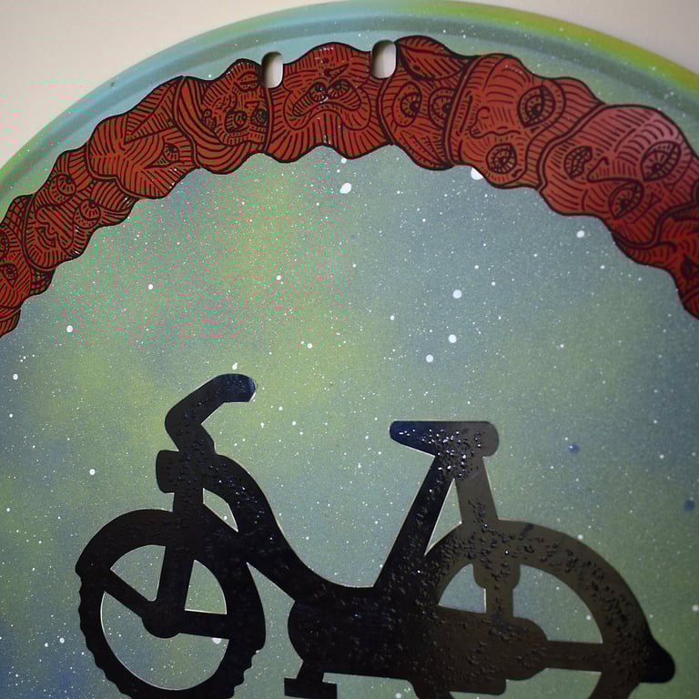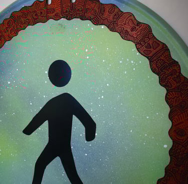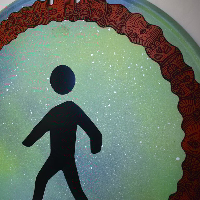 Técnica: Rotulador acrílico y spray sobre señales de tráfico